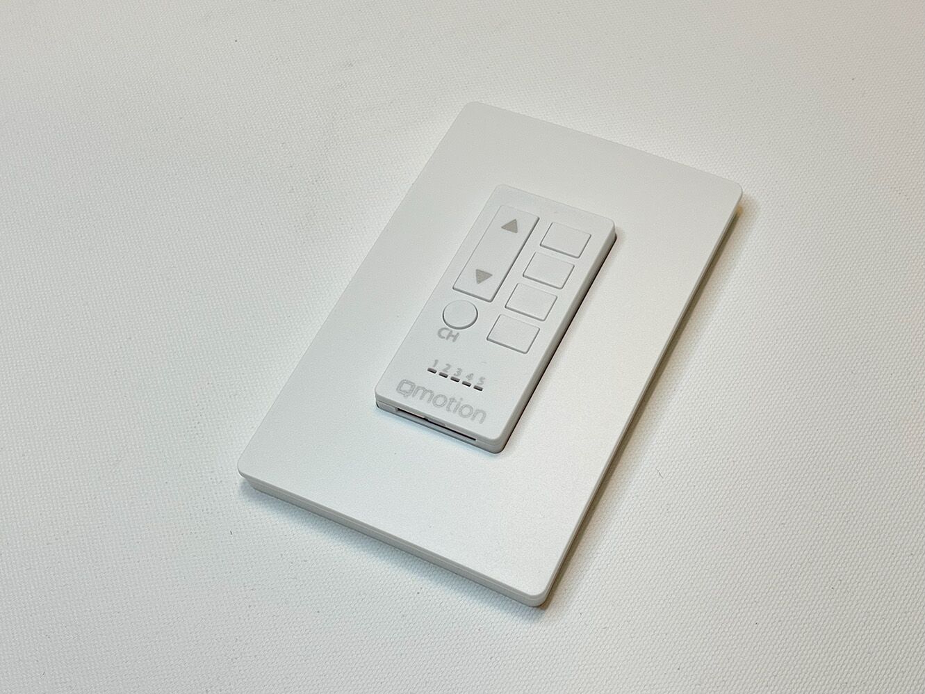 The QMotion QDR2 (ZIGBEE) Remote & Wall Plate offers seamless control for QMotion Gen 3 shades, featuring six intuitive buttons for precise up/down movement and preset positions at 20%, 40%, 60%, and 80%. This multi-channel remote supports an unlimited number of shades per channel, making it ideal for both individual and grouped shade control. The sleek design includes a motion-activated channel indicator for easy identification and a magnetic back for convenient storage in the QMotion wall plate. Utilizing Zigbee technology, this remote ensures reliable, low-power, and secure wireless communication, ideal for home automation. Effortlessly manage your shades with this advanced remote, ensuring a perfect fit and secure placement.